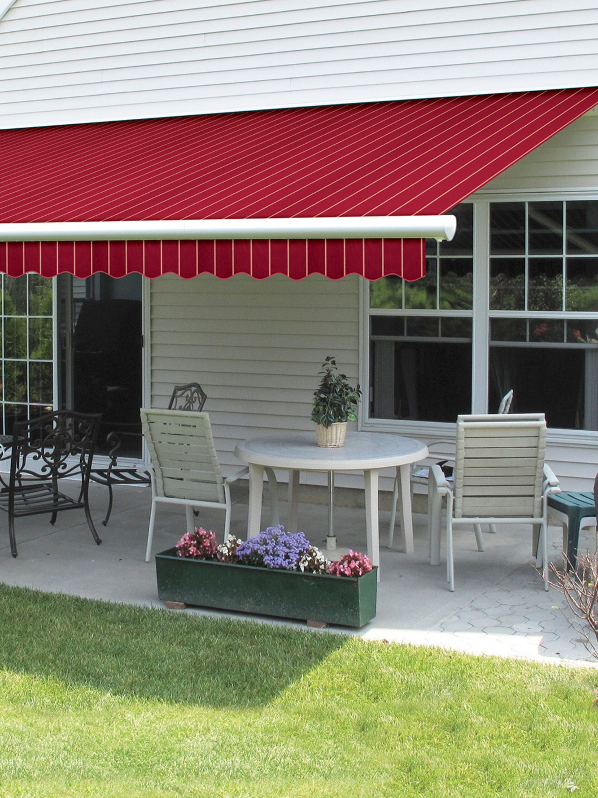 - Retractable awnings offer protection when needed and tuck away easily during winter
